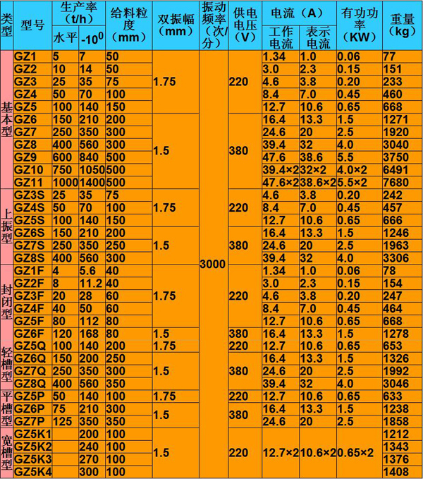 7、不適用于具有防爆要求的場合。 結(jié)構(gòu):電磁振動給料機由料槽、電磁振動器、減振器、控制箱幾部分組成技術(shù)參數(shù)見下表